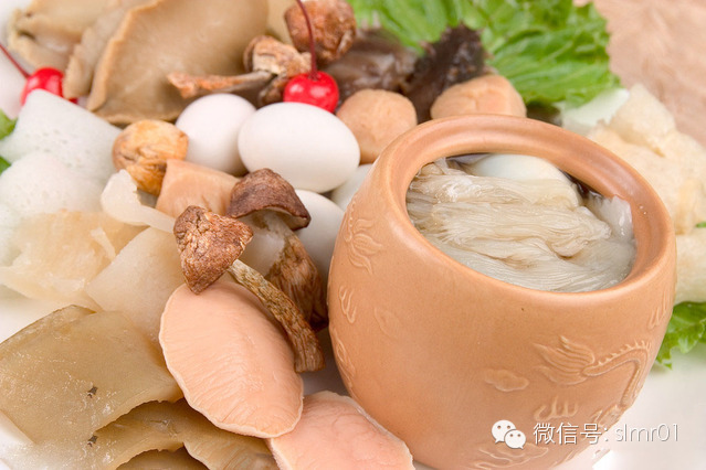 (3)水煮滚,放入以上所有材料,用大火煮十分钟,再转文火煮两小时,加盐调味即可食用。